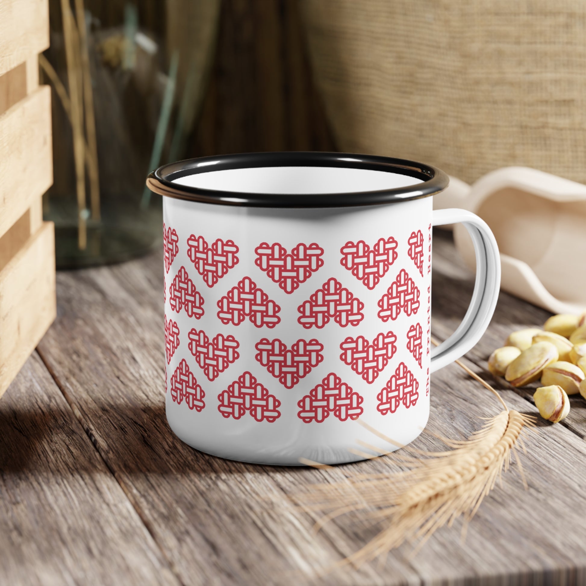 The Printed Heart - Enamel Camp Mug - Red Hearts