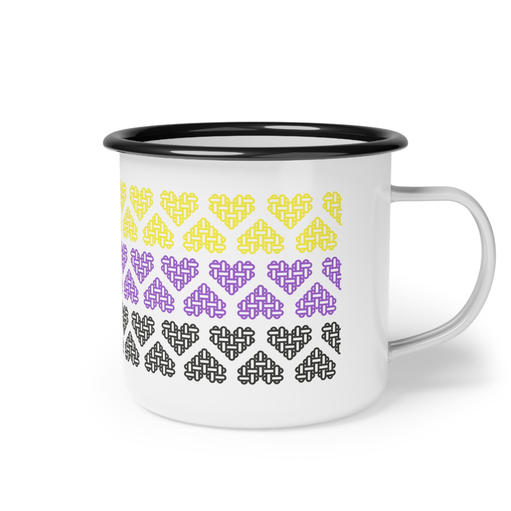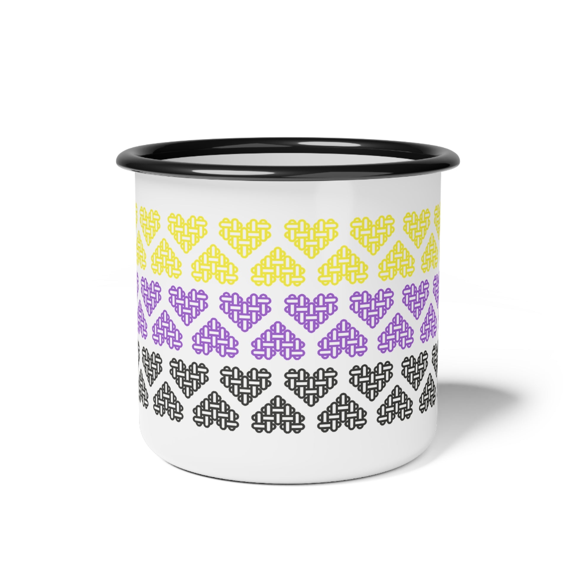 Sip your favorite beverage from this enamel mug in Non-Binary Pride Flag colours - a mug that's more than just practical, it's a celebration of identity and self-affirmation. With every cuppa, you show your pride and support for the LGBTQ community and their ongoing journey toward visibility, recognition, and acceptance. Here's to diversity, inclusivity, and being true to yourself. This enamel mug will brighten your mornings and elevate your camping trips or cozy nights at home. It's not only perfect for yourself but also a great gift for partners, friends or family for birthdays, Christmas and anniversaries. Be proud and colorful.