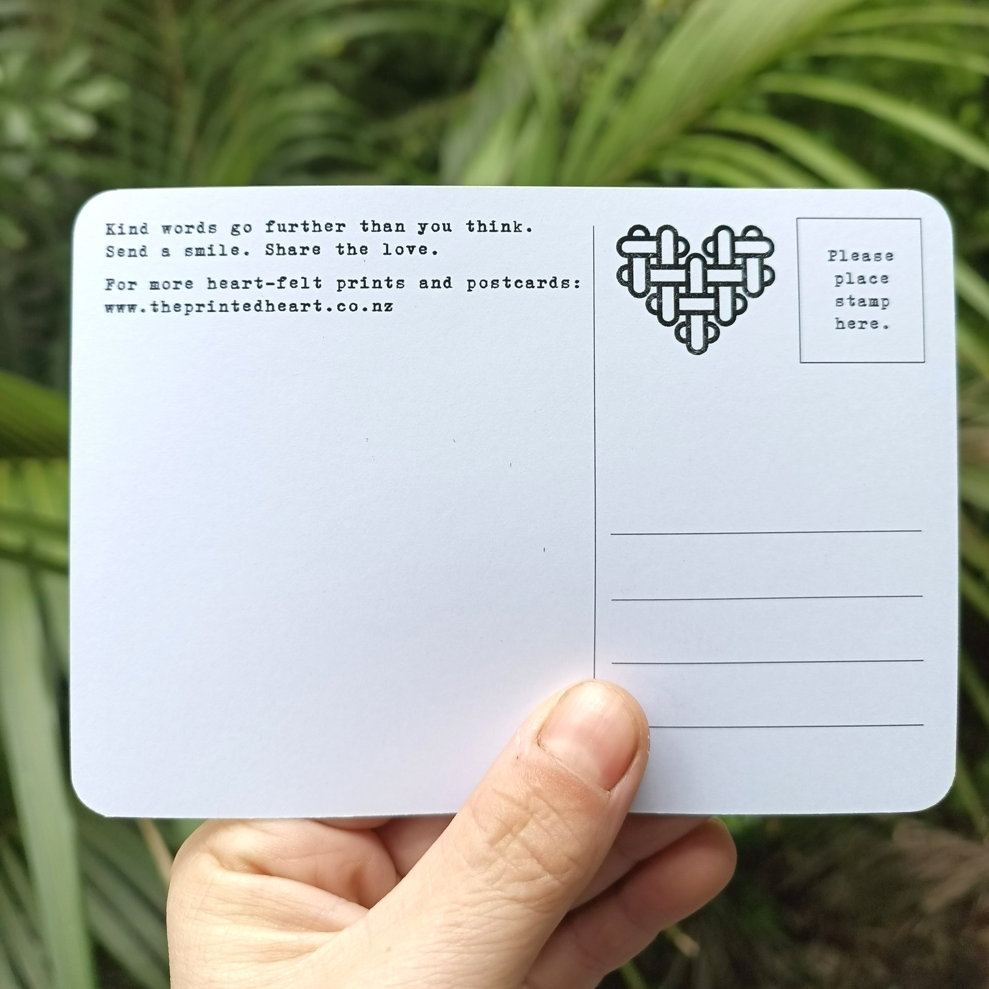 - Back: White background with space for your handwritten message and address